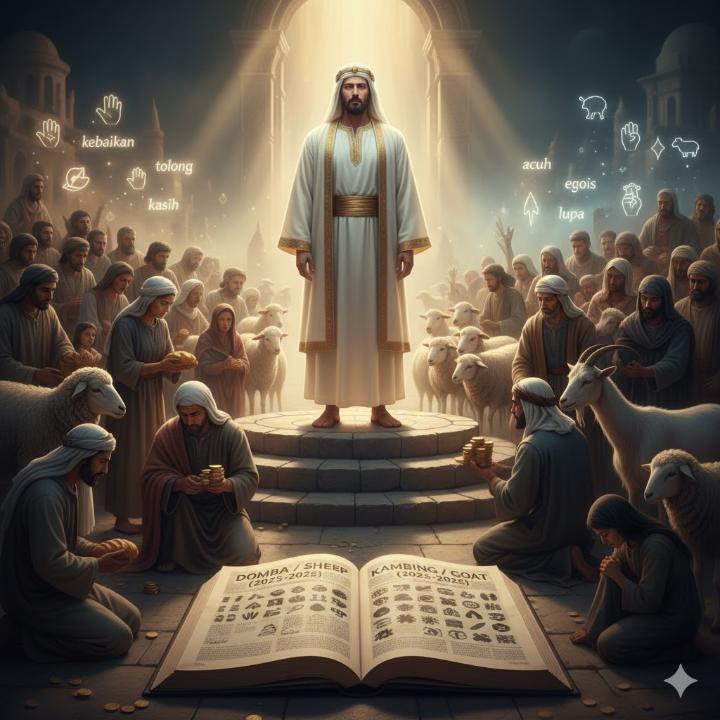 Kalau begitu, apa yang harus dan bisa kita lakukan? Saya menganjurkan hal berikut ini. Seusai ibadah ini, pulang dan periksa dengan saksama catatan dalam buku harian anda untuk tahun 2025. Hitunglah dengan cermat berapa banyak kali anda menelantarkan mereka yang kecil, menindas orang-orang lemah, memeras fakir miskin dengan cara melegalkan korupsi secara telanjang berdalih aturan, acuh tak acuh dengan kaum yang kelaparan, menista sesama saudara, dan hanya mau hidup untuk memperkaya diri sendiri. Lalu ujilah dirimu sendiri dari catatan-catatan itu, di kelompok mana anda ada sepanjang tahun 2025: di kelas kambing atau tergolong domba.
